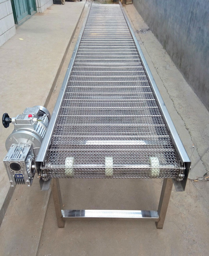 寧津春秋網鏈設備有限公司生產的網帶輸送機的材質有:碳鋼、不銹鋼、熱塑鏈,根據您的商品的需求可選擇不一樣寬度、不一樣形狀的鏈板來完結平面運送、平面轉彎、提高、下降等請求。